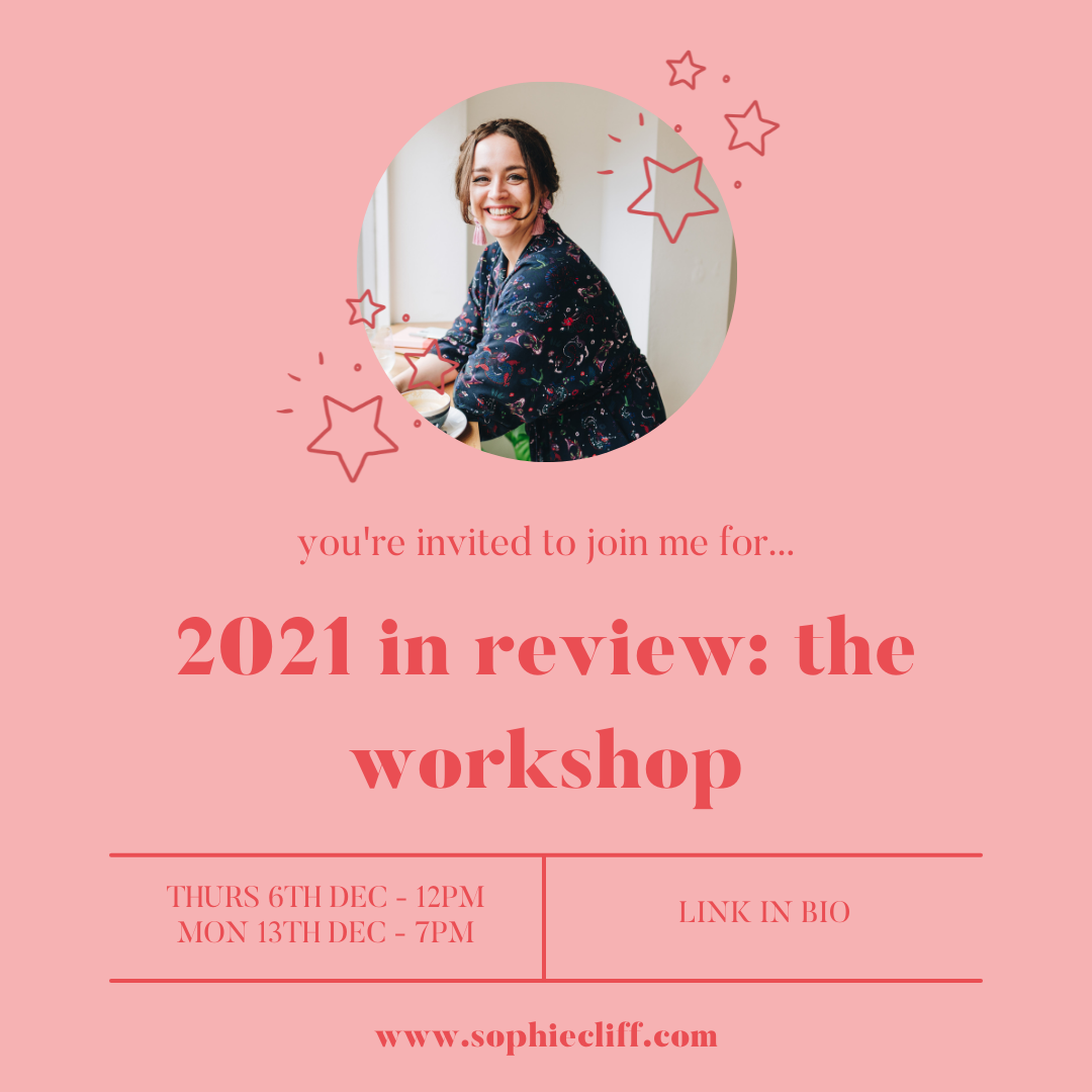 It can be hard to know where to start with reflection, and it can be even harder to actually carve out the time to sit down and do it during the busiest period of the year. For that reason, I’ve been running a workshop every December for a few years now, and it’s always one of my highlights of the year. By buying a ticket you’ll not only get access to a guided reflection workshop, jam-packed with tools and exercises to help you learn the lessons of the year, but you’ll also be committing to spending 90 minutes on yourself - something that can feel priceless.