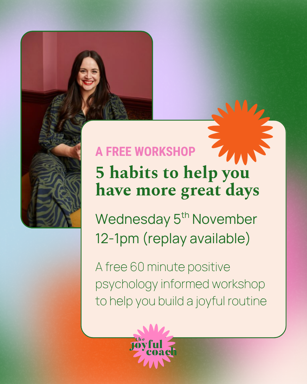 A free 60 minute positive psychology informed workshop to help you build a joyful routine